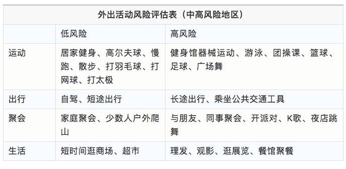 6月18日,国务院应对新型冠状病毒疫情联防联控机制通过国家卫生健康委网站,发布《低风险地区夏季重点场所重点单位重点人群新冠肺炎疫情常态化防控相关防护指南(修订版)》。 《指南》指出: 居家、运动、户外、公园、旅游景点,无需戴口罩。 超市商场、餐厅、写字楼、会议室、车间、校园内等,保持1米以上社交安全距离,可不戴口罩。 养老院、儿童福利院、精神卫生医疗机构等特殊场所内人员无需戴口罩,工作人员、外来人员戴口罩。 影剧院、游艺厅和网吧、交通工具等相对密闭空间,公共场所服务人员、医院就医人员、职业暴露人员戴口罩。 新冠肺炎确诊、密接、疑似和无症状感染者,入境、隔离、发热咳嗽等人员戴口罩。 《指南》明确,社区、公园、商场超市、旅游景点、餐厅、银行、理发店等可不做体温检测。 宾馆、影剧院、游艺厅和网吧等空间相对密闭场所,养老院、福利院等特殊单位以及交通客运场站、学校、机关事业单位等要坚持体温检测,强化环境卫生与消毒等措施。 歌舞厅(KTV)、道路、水路客运和民航等要坚持“健康码”检查。 虽然四川大部分地区属于低风险区,但小伙伴在出门玩耍的同时也注意不要放松警惕,务必做好个人防护工作哦~ 中高风险区“出门风险评估表”