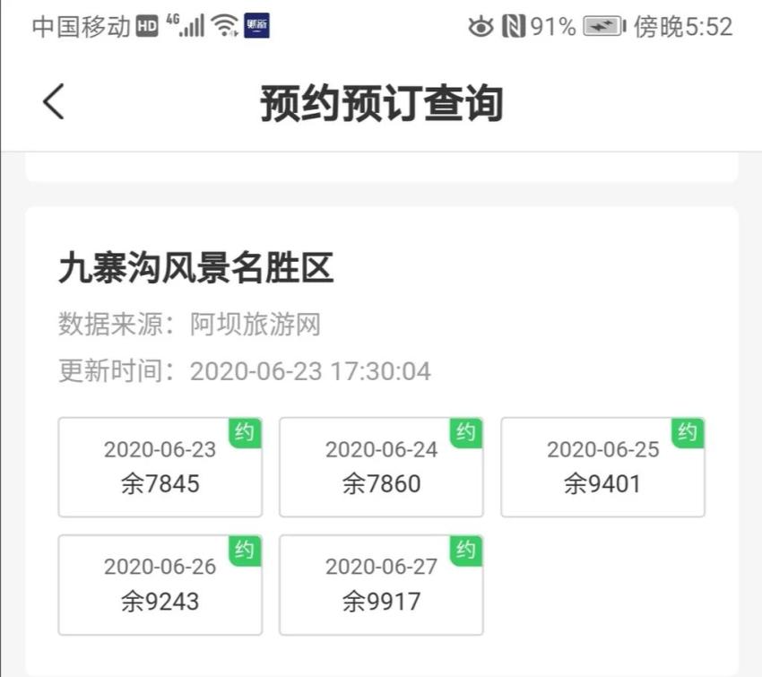 每日6:00—9:00投放8000张门票 9:00—12:00投放4000张门票 12:00—16:00投放1500张门票 有计划游览峨眉山的游客注意预约时间,按时游玩。 九寨沟 6月23日,阿坝州发出旅游温馨提示:端午节期间,九寨沟、黄龙等景区继续实行预约限流措施,游客前往景区游玩务必提前预约。