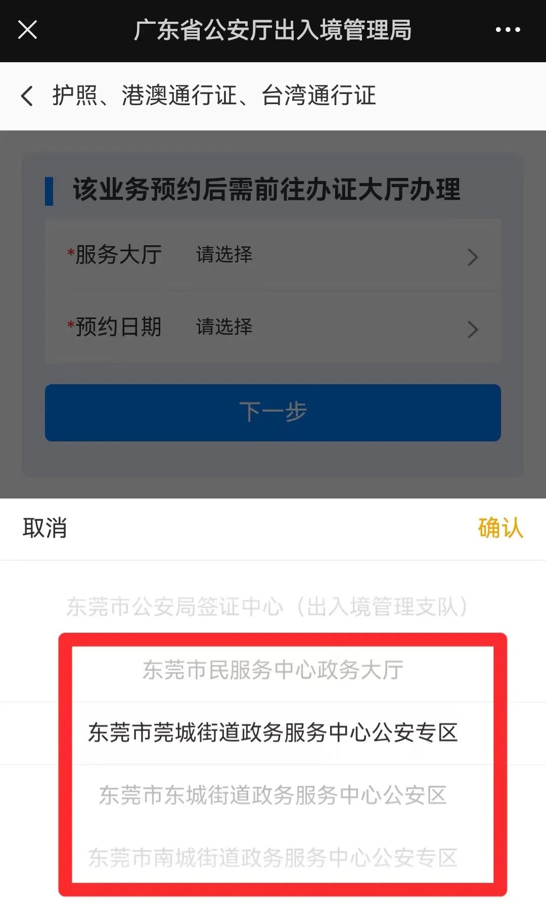 ②选择各镇街及东莞市民服务中心的可办理港澳旅游签注及人才签注。 (上下滑动查看更多)