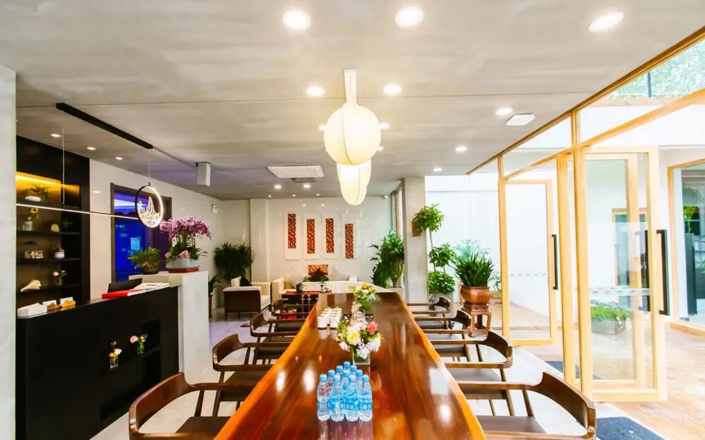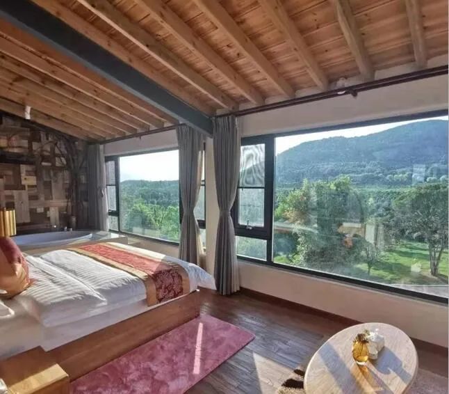 共有35间阁楼、复式、榻榻米、家庭套间等主题各异、雅致温馨的客房。独立院落,错落有致,花团锦簇,风景宜人;独享五星级民宿的品质感、舒适感。配套有中餐厅、早餐厅、咖啡厅、休闲吧、茶吧、多处近万平方阳光草坪、各种规格多功能会议室,分别可容纳200人、150人、30人等不同规模的会议,满足不同客人多样化的需求。