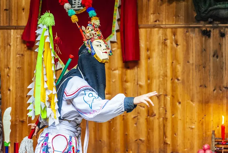 贵州的屯堡(pù)文化主要集中在安顺一带,感兴趣的朋友,在前往贵阳途中不要错过云峰屯堡和天龙屯堡,穿越600年历史长河,感受“活着的明朝记忆”。 充满民族风情的屯堡地戏 图源@Veer图库 ▼