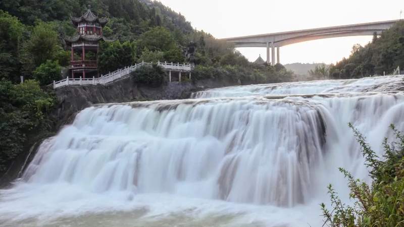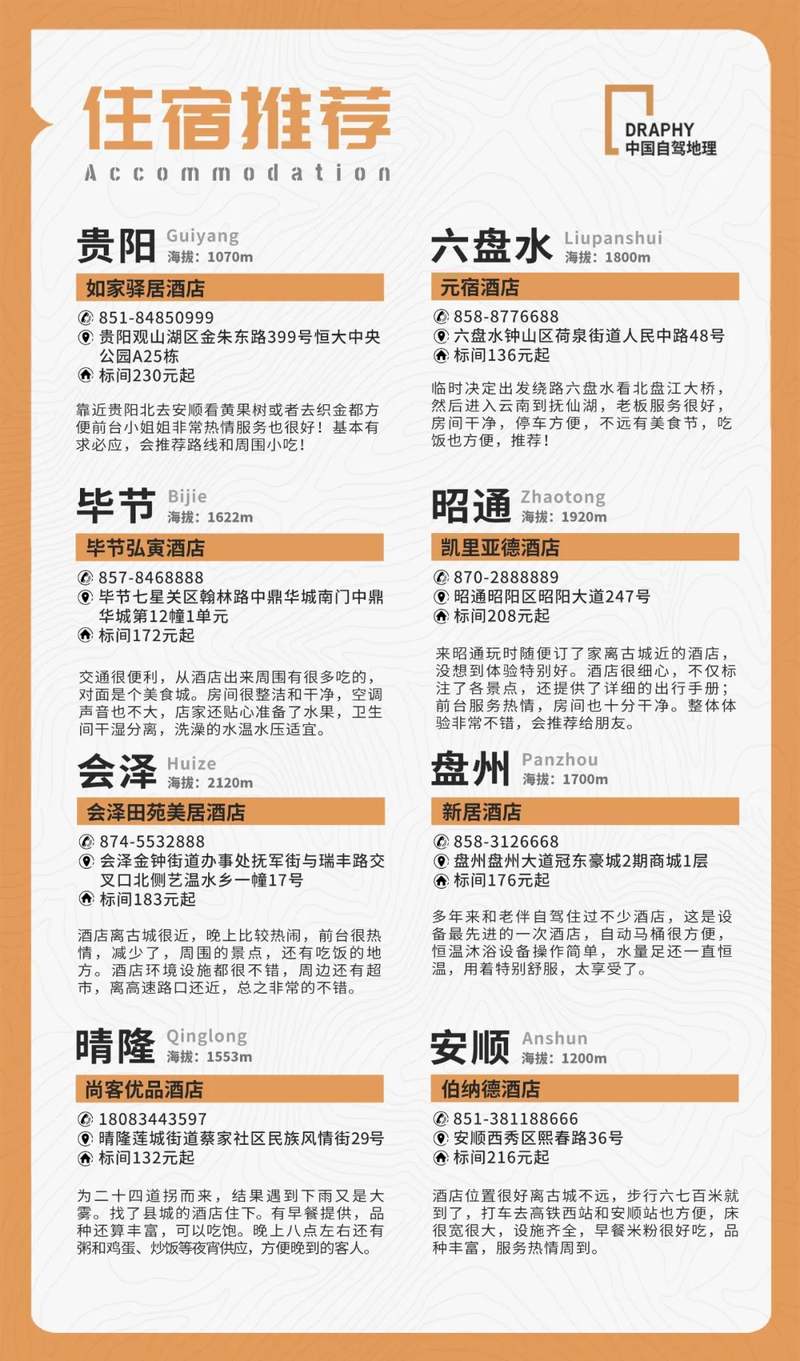 抗战胜利后,为将这段公路保护起来,当地在旁边修建了翻越“鸦关”的公路。 如今我们想亲自感受每一道弯,只能是乘坐景交车,还可前往观景台拍摄经典的公路全景图,在山顶上的展览馆,深入了解这段抗战历史。 7月18日,晴隆火把节开幕 当地群众用火把、车灯点亮“二十四道拐” ▼ 接着可以逛逛位于莲城镇的安南古城,2013年为拍摄《二十四道拐》而在原有历史基础上进行修复重建。 而位于的阿妹戚托小镇,则是全国唯一一个整乡异地搬迁的特色小镇景区。 吃货攻略 ①精武牛:饭点本地人也爱来的店铺,这家牛肉火锅店汤底可选口味挺多,蔬菜任吃,价格实惠,才38元/位!(晴隆县北环路74号) ②晴隆特色豆豉辣子鸡:采用新鲜的乌骨鸡,加上自制糍粑辣椒和豆豉别有一番风味,看起来很辣但其实吃起来还好。(戚托小镇景区三区) 景点信息 ①二十四道拐:门票60元,观光车往返30元。 ②阿妹戚托小镇:每晚8点金门广场都有篝火盛会,和当地彝族儿女一起跳火把舞。 自驾信息 从晴隆到安顺共行车142公里,走G320、黄果树大道、贵黄公路,大约4小时。 瀑布屯堡段 作为“中国瀑乡”,安顺除了黄果树瀑布,还有许多性价比高的瀑布有待发现。并且安顺还是“屯堡文化之乡”,是深藏贵州的“明代活化石”! #第八站 安顺 瀑布之乡 离开晴隆,前往贵阳的途中会途经安顺。安顺最出名的莫过于亚洲第一大瀑布黄果树瀑布,在龙宫可看全国最长水溶洞的钟乳石奇观。 当然这两大景区门票也是够呛,推荐“野生”的滴水滩瀑布,无需门票! 黄果树瀑布已进入最佳观赏期 (丰水期:5-9月) 视频来源@《中国国家地理》 ▼ 而在黄果树和龙宫两大景区之间,还有个原汁原味的小众布依族村寨——高荡千年布依古寨,位于安顺的群山之巅,海拔1186米的“云端石头博物馆”。 在安顺市区内,中国现存最精致的文庙之一的安顺文庙(又名“府学宫”)值得一去,始建于明代。 航拍天龙屯堡,图源@Veer图库 ▼