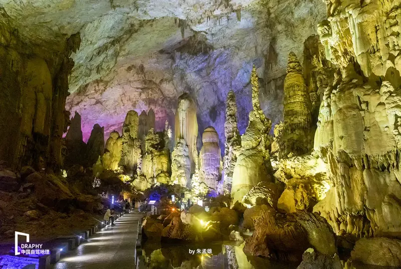 一路来到毕节的织金县,不能错过织金洞。 “织金洞外无洞天”,这里宛如巨大的地下宫殿,岩溶景观形态万千,不愧为中国溶洞之王!附近还有一个织金洞大峡谷。 贵州首个地质公园织金洞,摄影@朱孟雄 ▼