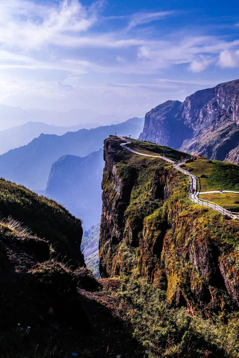 离开昭通古城,不赶时间的朋友,可以沿西边的大山包一级公路前往“中国黑颈鹤之乡”大山包,漫步高山草甸,看鸡公山大峡谷的云海翻涌,秋冬时节还可观成群鹤舞。 如继续沿乌蒙山的脉络北行,则有大关县的黄连河瀑布群、彝良县的小草坝、以及盐津县的豆沙关与五尺道……可做深度探索延展。 大山包断崖高山草坪风光 图源@特克里/图虫创意 ▼
