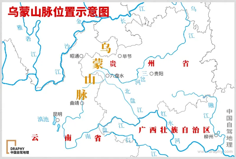 乌蒙山脉位置示意图 制图@《中国自驾地理》 ▼