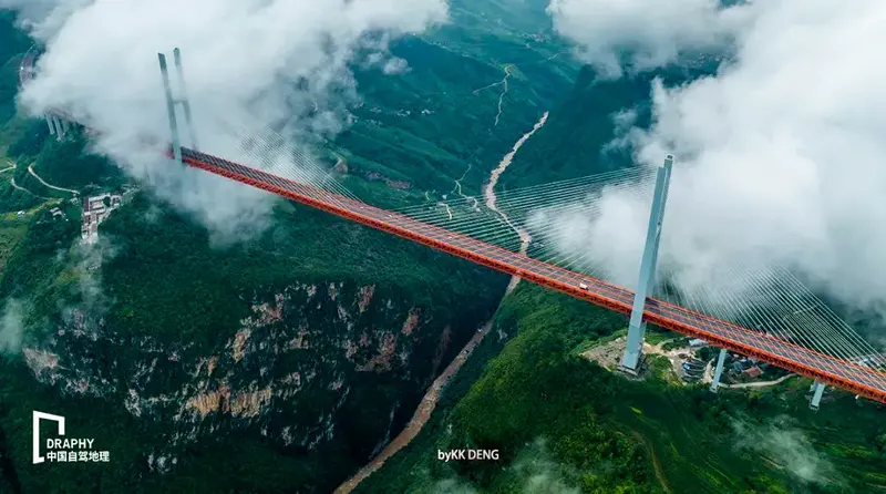 继续往南走,尼珠河大峡谷、北盘江大桥观景台、乌蒙大草原都在等着你。 横跨在尼珠河大峡谷之上的世界第一高桥 北盘江大桥 桥面距谷底高达565米,相当于200多层楼高 摄影@KK DENG ▼