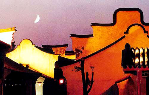 乌镇是江南四大名镇之一,是个具有六千余年悠久历史的古镇,曾名乌墩和青墩。乌镇是典型的江南水乡古镇,素有“鱼米之乡,丝绸之府”之称。七月七,是“乞巧”,月上柳梢,人约乌镇。潺潺的流水,古桥轻舟,满池的艳荷,漫天萤火,今夏的七夕,提一盏花灯和她(他)登上乌镇的古桥一起看夕阳西下,或只身一人提灯走桥,乌镇觅爱。 西栅 乌镇其实是早已开放的东栅景区;西栅则是经过修葺后对外开放的。 进入西栅得乘渡船。用“和谐”来形容西栅是最确切的。西栅由12座小岛组成,60多座小桥将这些小岛串连在一起,河流密度和石桥数量均为全国古镇之最。例如,通济桥和仁济桥两桥成直角相邻,不管站在哪一座桥边,都可以看到一个桥洞里的另一座桥,故有“桥里桥”之称。“桥里桥”是乌镇最美的古桥风景,堪称桥景一绝。 在西栅有许多“老底子”的东西——老街长达数公里、青石板路、屋子有一半挑在水上。有几样纯手工的东西可以一看:一是手工制酱作坊,镇上的红烧菜系味道不错,很大一部分是因为自产自销的酱油的功劳。价格不便宜,一瓶普通酱油25元;二是生铁锅,系手工铸造。开价为99元的铁锅据说最受欢迎;三是蚕丝,益大丝号始创于光绪初年,游客可以亲手在老底子的缫丝机上操作。 夜幕降临时,喝着小酒,看对岸楼台上唱戏,或者到水边放几盏莲花灯,都会令人心醉。摄影爱好者千万别忘了带上三脚架。这里还保留着一些民俗活动。当时,女人们梳妆后各带一只平时煎药的瓦罐结队而行,过桥时将瓦罐丢入河中,认为这样可保佑在新的一年里无病无灾。到了近代,丢药罐的举动消失了,提灯走桥演化为节日游乐和祈福活动。 西栅的酒店和民宿也很特别,外壳是明清时期的,内有空调、直饮水、天然气、宽带网络、卫星电视等,游人在古与今之间穿梭,享受着另一种“和谐”。西栅的古街上还“藏”着高级商务会馆、SPA养生馆、酒吧等最现代化的娱乐休憩场所。