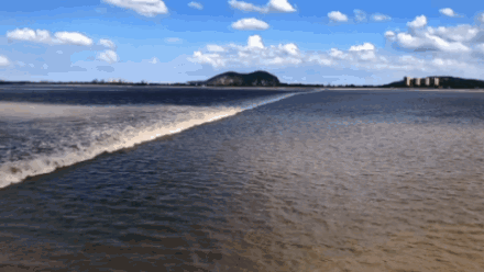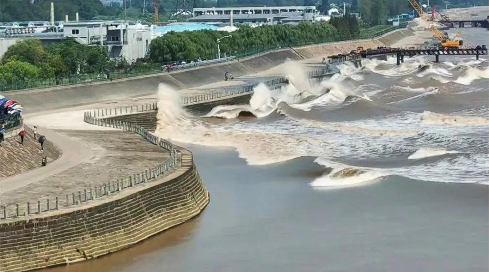 大潮形成的原因 跟钱塘江口状似喇叭形有关 潮水易进难退 当大量潮水从钱塘江口涌进来时 形成后浪赶前浪 一浪叠一浪涌 沿海一带东南风 与潮水方向大体一致 也助长了钱塘江潮势