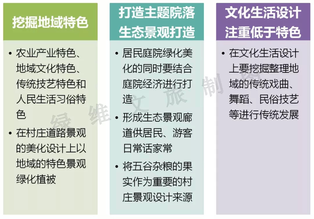 创新即收益!在乡村旅游开发过程中,运用农旅融合创新思维,可有效延伸农业产业链、提升价值链、拓宽增收链,促进农民就业创业,拓宽增收渠道。本文提出了乡村旅游十大创新模式,通过产业依托,获得更多收益。 绿维文旅专注于“旅游+农业”创新发展,至今已完成各类农旅融合、休闲农业项目数百个,业务类型涉及休闲农庄、休闲农场、乡村度假、田园综合体、现代农业庄园、葡萄酒庄等。其中花乡果巷、蓝调庄园、山东风车农庄、葡萄沟、普洱七彩度假农庄、广东四季飘香都市农场、晋城景熙现代产业园、红酒小镇等项目已经成为业界经典和地方示范,受到政府、游客和当地居民的关注和好评。 乡村振兴背景下和消费升级趋势下,乡村旅游提质升级势在必行。而随着产业结构的调整和企业转型的叠加效应,未来涌入乡村旅游市场的资本与开发商也将越来越多,市场竞争将愈发激烈。作为乡村旅游的开发与运营主体要想在未来立于不败之地,在众多产品中脱颖而出必须要创新。 1 建设美丽乡村 1. 创新手法 新农村街道庭院生态设计+五谷杂粮创意化设计 2. 产业依托 美丽乡村建设工程