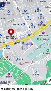 (该停车场实景和位置示意图) 注意:该停车场旁边便是沃尔玛商场,麦当劳、肯德基等餐饮较为齐全。首选推荐该停车场。 NO.2 罗宾森购物广场停车场 罗宾森购物广场停车场位于厦门站对面,距离厦门站大概350米,步行约5分钟。