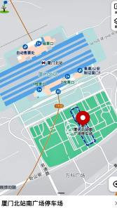(该停车场实景和位置示意图) NO.3 厦门北站南广场停车场 厦门北站南广场停车场紧邻厦门北站,距离厦门北站大概450米,步行约7分钟。