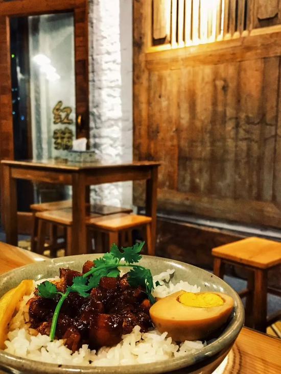 古木屋外观加铺垫水泥花砖的红猪卤肉饭,刚进门就能闻到一阵古早味。 不足20元就能吃到一碗晶莹饱满、粒粒分明的卤肉饭可以说性价比较高,浓稠的酱汁,油脂醇香却肥而不腻的卤肉能吃的内心欢喜。
