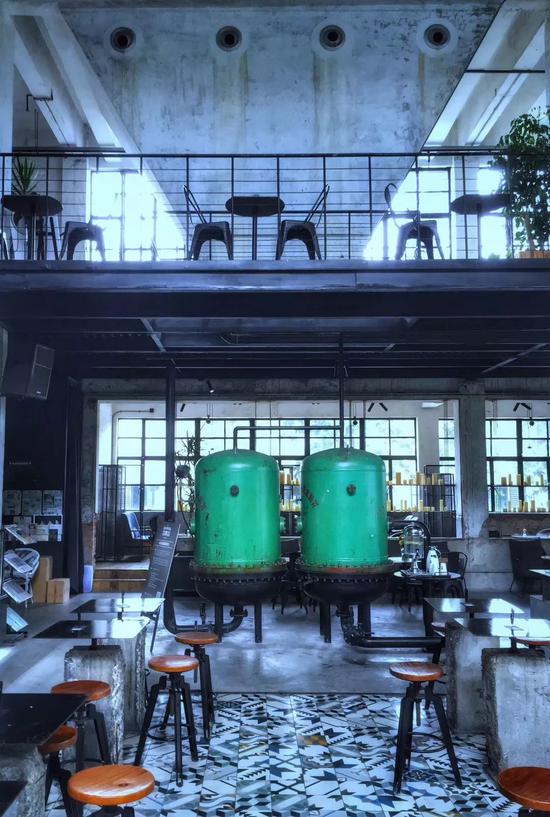 大空间下的小细节也见得用心,露出冷静的温柔。 几个巨大旧气压炉变身陈列柜,水泥立柱改造的桌子,都是激发灵感的设计,更彰显工业风中的理性美。