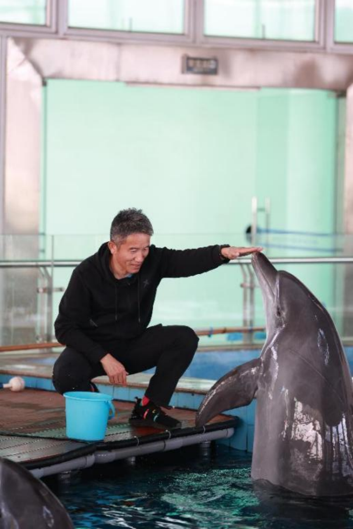 周清例行出海调查白海豚种群情况(周清供图) 对待海豚,周清像对待自己的孩子一样,精心呵护。由于海豚对水质要求很高,为了保证海豚馆干净整洁,周清自学了潜水,定期会穿戴上潜水装具潜到5米深的水下,细致地清理水池,保证海豚有一个健康生长的环境。 周清:海豚池很容易脏,一个星期需要清洗一次。每次清理之后,就觉得给海豚创造了一个很好的环境。它们在里面游得很舒畅,我就很开心,很有成就感。 2015年,在小嶝岛码头的海滩上,当地渔民发现一头白海豚搁浅。周清接到渔民的求助电话后,一边通过电话指导渔民救助,一边和相关技术人员火速赶往现场。那次救治持续了整整十天时间,但因为海豚的伤势过重,最终没有救治成功。不过,也为后来白海豚的救治工作积累了不少经验。如今,海豚馆里生活着4只可爱的宽吻海豚,它们是得到救助后送到馆里来的。周清和它们经常见面,早已经成为了好朋友。 周清:我觉得,做任何事情都会找到乐趣。只要你用心,海豚就会和你互动,这让我感到很欣慰。 在繁忙的工作之余,周清并没有忘记奉献社会服务人民的宗旨。他倡导成立了中华白海豚志愿服务队和厦门老兵公益跑团,利用业余时间组织开展公益活动。从2018年开始,每年建军节,周清都会带领团队来到小嶝岛上,慰问当年参加过“八二三”炮战的民兵英雄和60岁以上的孤寡老人以及家庭贫困的学生。此外,爱好摄影的周清还连续三年义务为村子里的老人拍蓝宝石婚照和金婚照,为村民拍摄全家福,为海岛渔民记录幸福美好的生活。 周清:我之所以坚持做公益活动,是因为我是一名党员,是一名退役军人,有责任、有义务在公益事业中做好表率。公益永远在路上,我们要用爱让厦门变得更加文明。