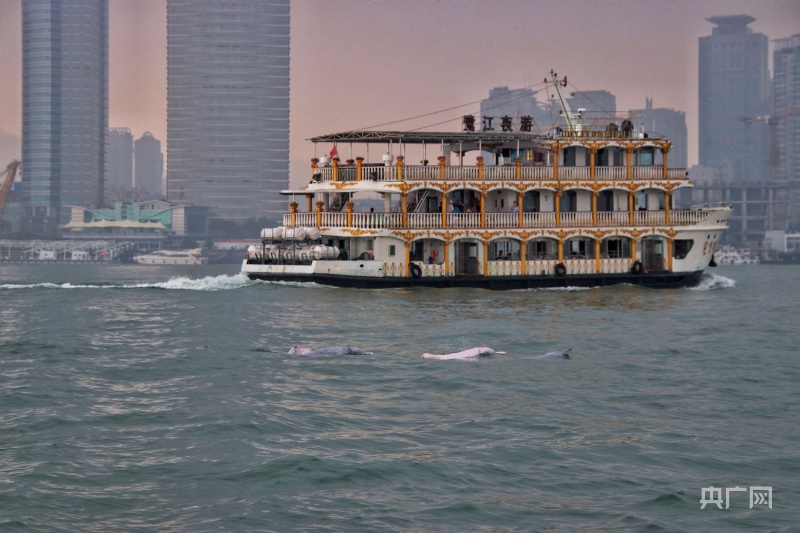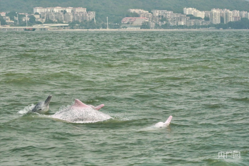 中华白海豚在厦门鹭江道附近海域“现身”(央广网发 周清 摄)