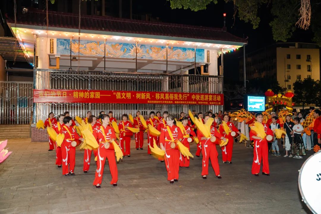 巡游队伍沿着渐美村道行进 中途在渐美村戏台广场 与党群服务中心逗留 进行表演 花好月圆夜