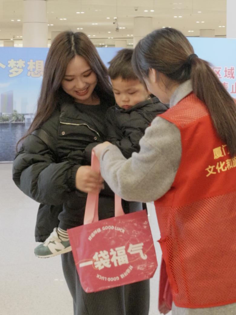 大年初一到初五,湖里区在五通码头开展“福礼来啦”——向来厦台胞赠送新春礼包活动,五通码头每天第一班抵港客船乘客可免费领取“福气湖里”定制福礼。