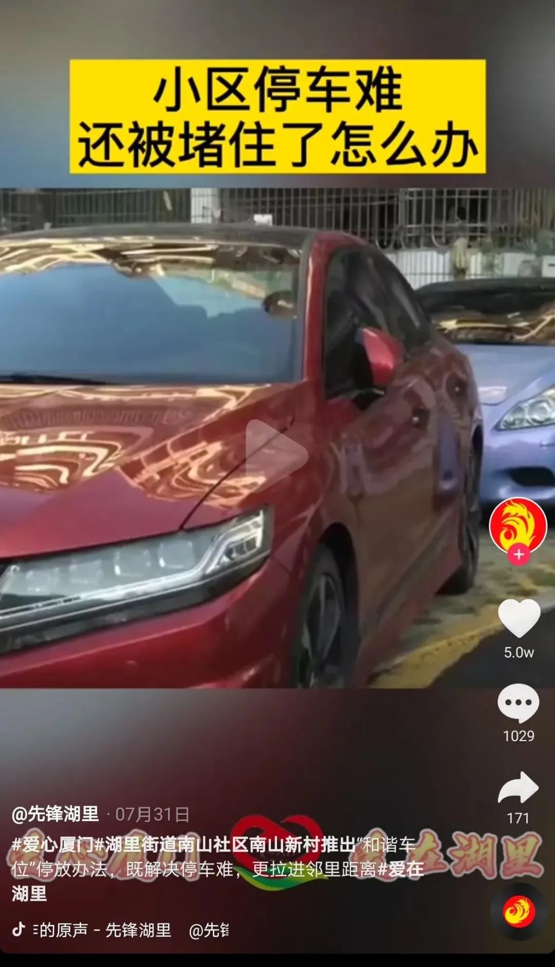 湖里街道的南山新村小区 创造性地推出“和谐车位”停放办法 在解决停车难的同时 更拉近邻里距离 为社区改造提供新思路 这条视频引发了网友们的热烈讨论 不少网友点赞这确实是个好办法 相信引起了广大有车一族的共鸣 那“和谐车位”是怎么实现的呢?