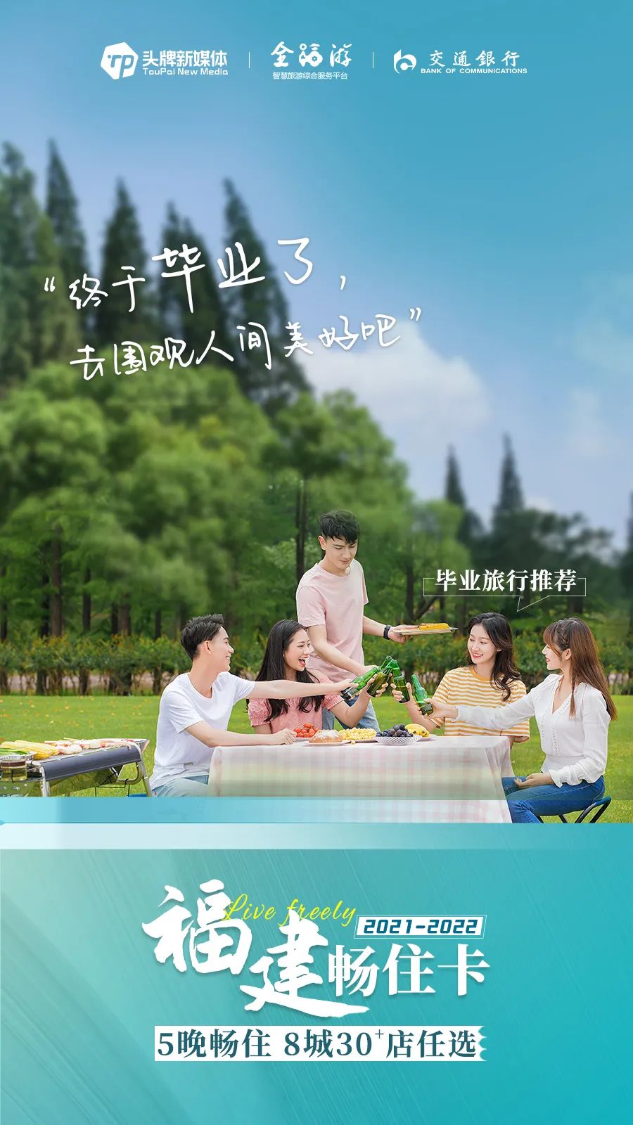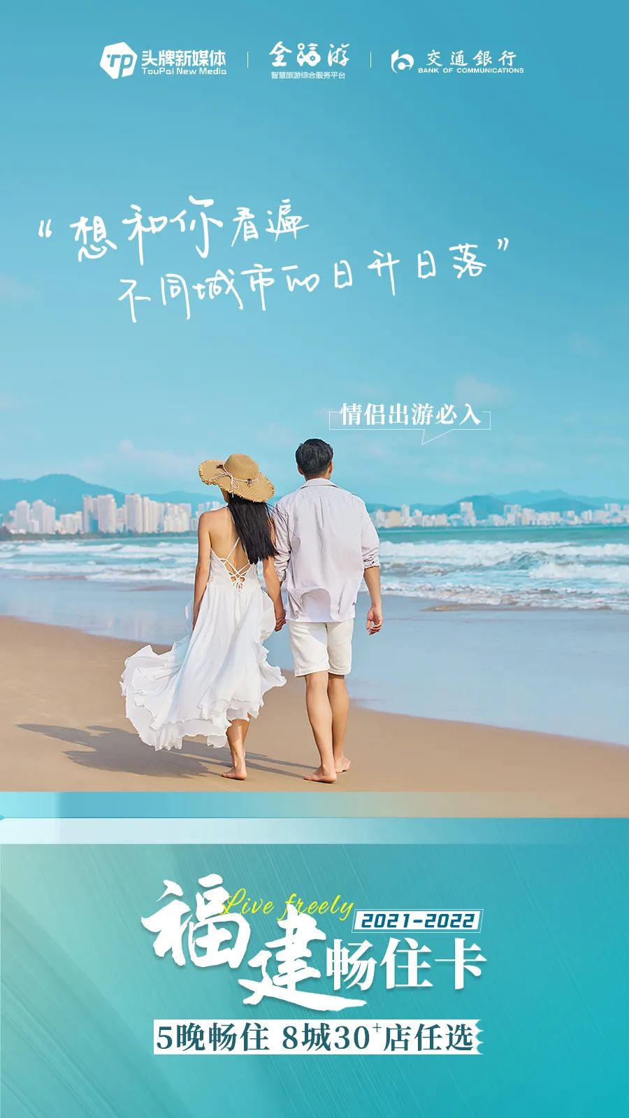 千呼万唤,王者回归 「头牌新媒体」X「全福游」X「交通银行」 联袂发起 2021-2022福建畅住卡 第一波仅需:999元/5晚 8城30+酒店/民宿任选 支付时使用交通银行卡 (信用卡或者储蓄卡) 可再减50元/套,到手949元/套 更有东南网、海峡导报、海峡网、 FM987福建私家车广播、 厦门头条、福州头条等 多家头部媒体助阵 开启福建人专属的度假狂欢! (点击图片购买) 福建畅住卡 · 王者回归 抢购价:999元/套 原价:4998元 今晚24点将涨价至1099元! 套餐内容 住|酒店品质客房 食|双人早餐 享|健身/游泳/温泉等 享|免费停车/WiFi *具体内容,请以各酒店套餐实际为准 可入住人数 2位成人+1位儿童 (儿童身高参照页面或咨询酒店) 使用期限 开卡日至2022年6月30日 (部分酒店有效期以具体套餐为准) 预约方式 下单后,系统将发送兑换码至下单手机号,复制兑换码关注“就想订”公众号-预约查询-福建畅住卡-进行绑定及预约使用,图文教程见文末(如长时间未收到短信码请联系客服:400-078-8089) 审核流程 进入待审核状态后,人工将会根据酒店实时房态进行审核,如您预约成功,将会显示入住时间,并收到预约成功的短信;如您预约的日期已经满房,客服将会联系您改期 开放预约时间 2021年7月26日15点开放预约 绑定须知 一个微信号可购买多张卡,但每个微信号(身份证)仅限绑定一个兑换码,如需绑定其他兑换码,需换另一个微信号(身份证)进行绑定 银行补贴 活动对象:交通银行福建省分行借记卡、信用卡持卡人(限福建(不含厦门)发卡,公务卡、BOSS卡不参与本次活动); 活动内容:支付时,上述持卡人可再减50元/套,到手949元/套,单个客户仅限优惠1次,数量有限,先到先得。 畅住福建,乐游八闽 今年又有哪些新鲜面孔 快来一睹为快吧! 这一站,福州 Holiday Carnival 福州中庚聚龙酒店