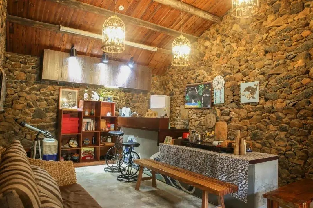 ★传统石屋改建而成,别有海岛风情 ★海上草堂、三行诗、朝花夕拾...命名诗意又有温度 ★客房保留一面石头墙,尽显怀旧的文艺气息