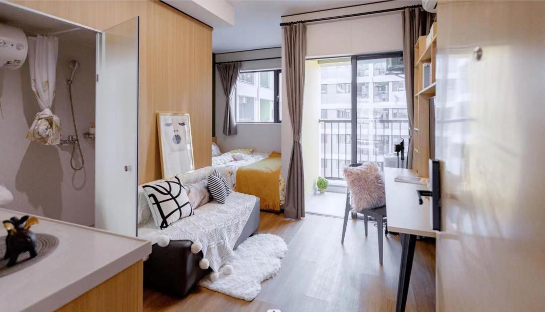 走进公寓,映入眼帘的是温馨舒适的居住环境。该项目分为单间、一室一厅、两室一厅三种户型,并按照“拎包入住”标准配置定制家具、生活家电等。租金价格为周边同品质、同地段租赁住房的9.5折。