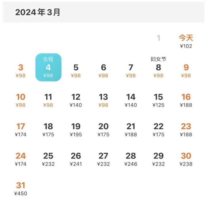 厦门—贵阳 3月去程最低价:98元