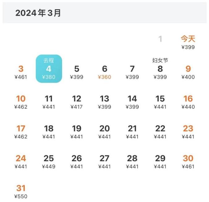 厦门—北京 3月去程最低价:349元