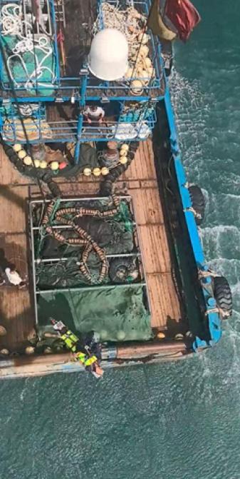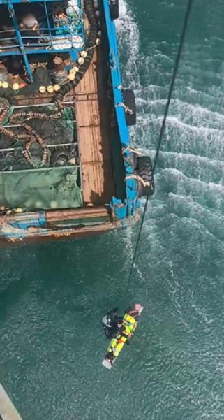 接到任务后 东海第二救助飞行队 立刻启动救助程序 由于事发海域距离较远 救助指挥协调渔船调整航向 与救助直升机相向而行 争分夺秒缩短救援时间