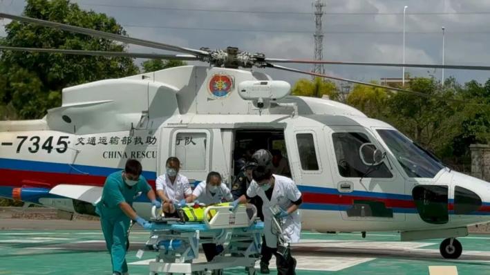 8时47分 “B-7345”救助直升机 从厦门高崎机场起飞 9时52分 机组抵达目标海域 现场风急浪高 机组人员沉着应对 精准操控直升机 在渔船甲板起伏间隙 抓住最佳救援时机 迅速放下救生员 10时14分 救生员成功将患病船员 及1名陪同人员安全救起 直飞厦门大学附属翔安医院 飞行途中 机组人员时刻关注患病船员生命体征 并通过救助值班室 将人员病症反馈至医院 确保医院做好接诊准备 11时10分 “B-7345”救助直升机平稳降落在医院 患病船员被迅速移交给 医院医护人员进行救治