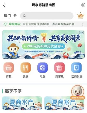 即日起至11月底 农行掌上银行App“鹭享惠”上 还将发放16万元“湖里魅力购” 餐饮/水产配套消费券 快快登录农行“鹭享惠”平台购券吧